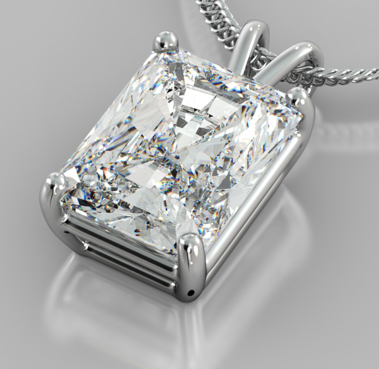 A beautiful, high shine and polish, excellent cut, natural radiant cut diamond pendant set in a 4 prong, 14 kt gold basket. Great for any party, or just to show off!