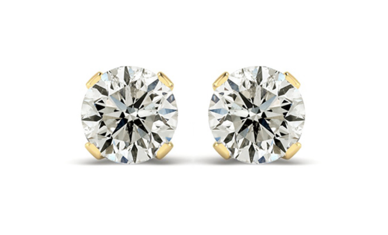 From the CaratX Natural Diamond Stud Collection | 2.00 CTW natural round cut,diamond stud earrings set in 14kt yellow gold, basket setting. 1 carat in each ear is there to sparkle!