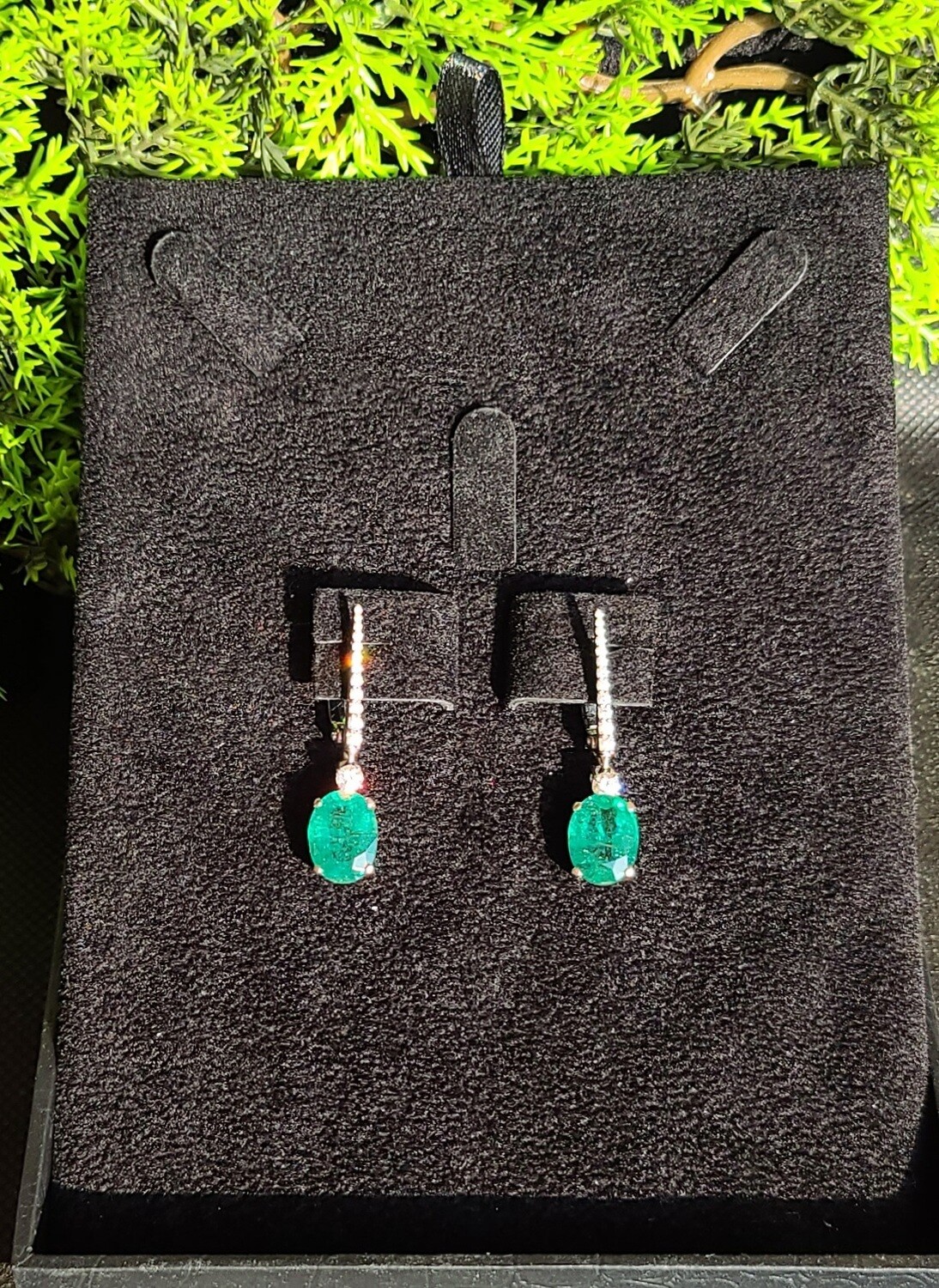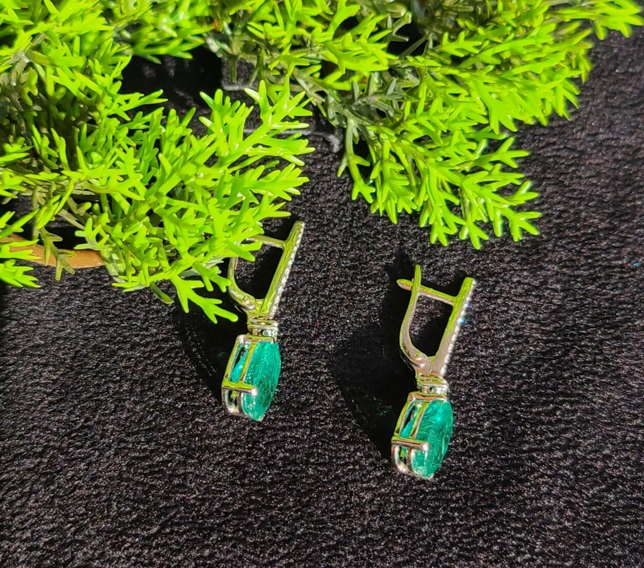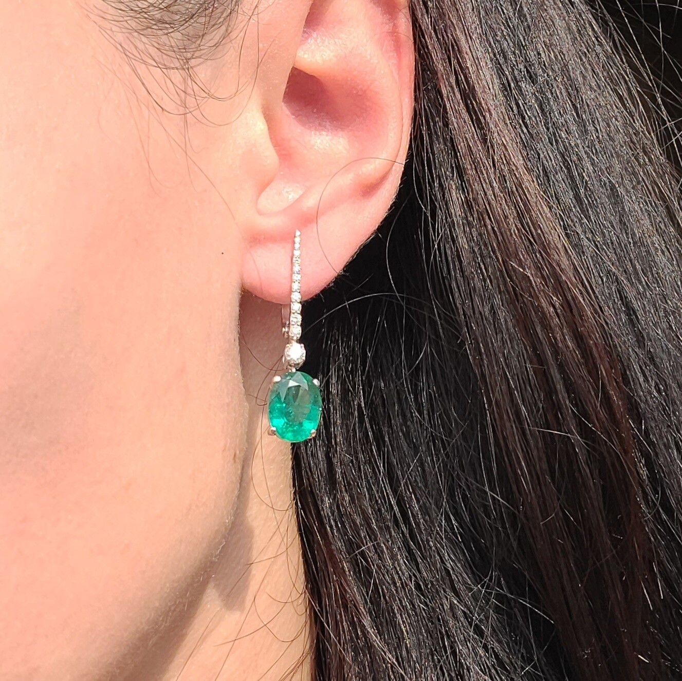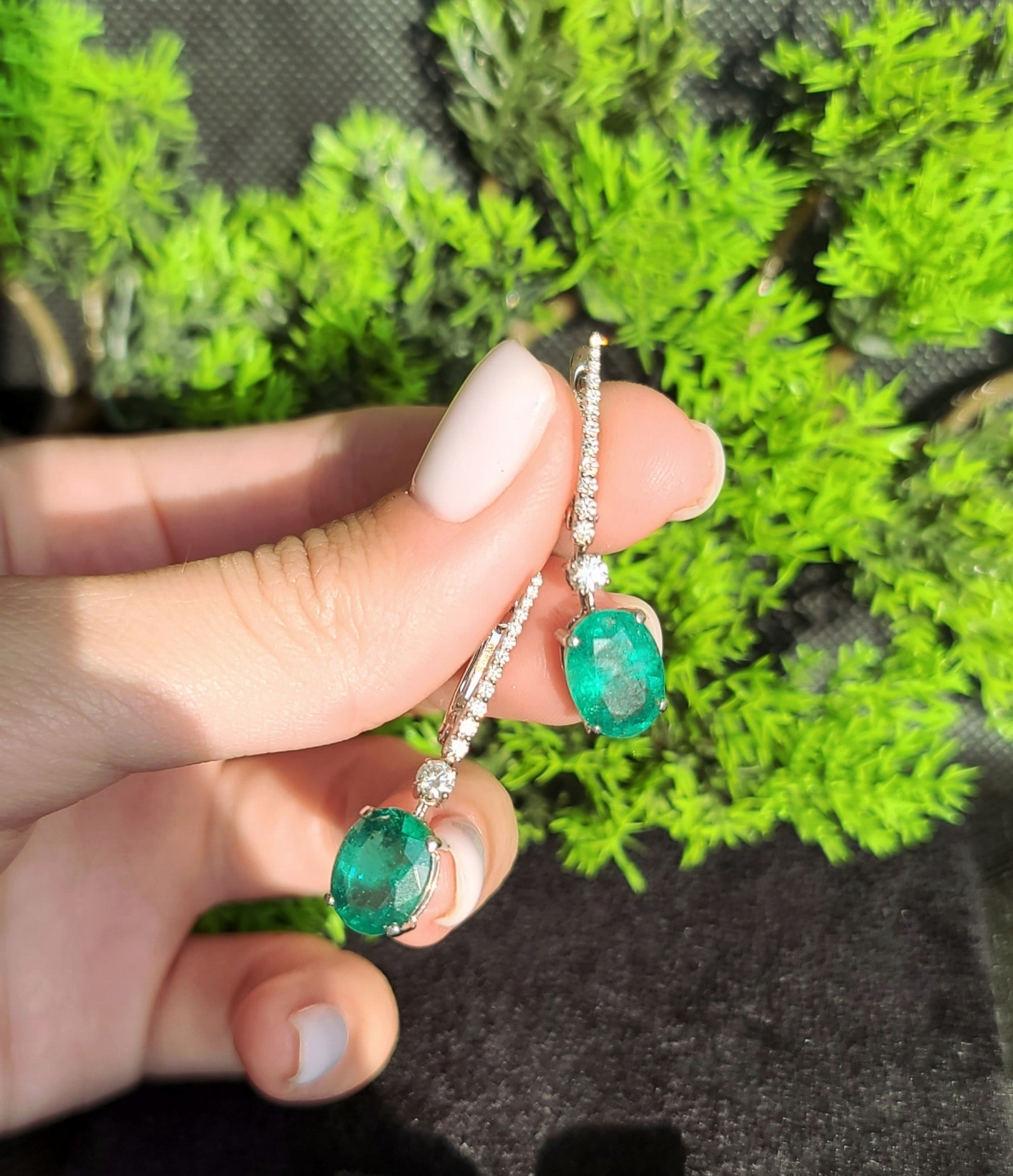 6.82 ct Emerald Oval Cut Earrings with Diamonds