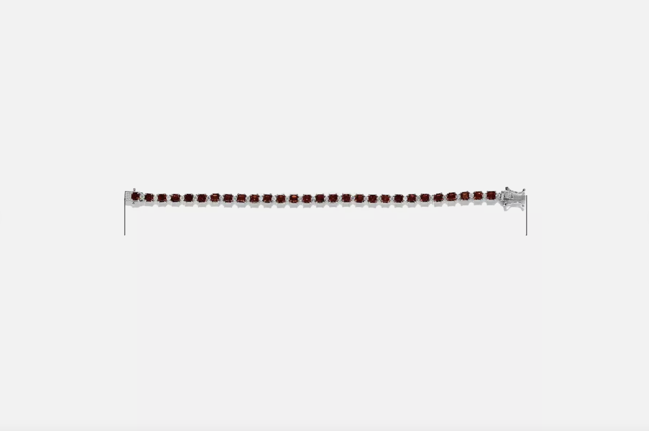 Experience timeless elegance with this red citrine sterling silver tennis bracelet, featuring Asscher-cut red citrine gemstones. This exquisite red citrine piece showcases a captivating design, alternating between radiant Asscher-cut gemstones and sparkling moissanite rounds