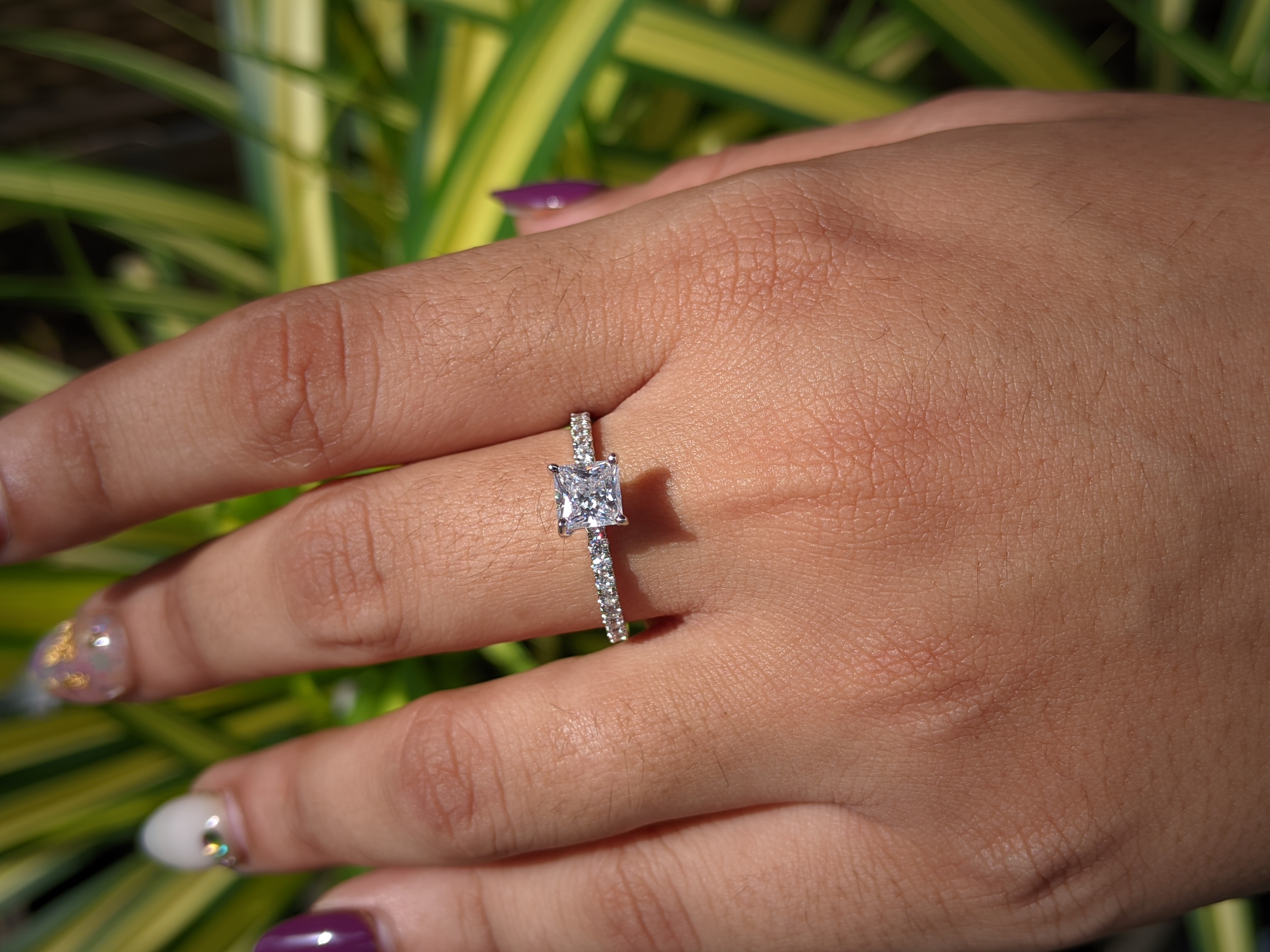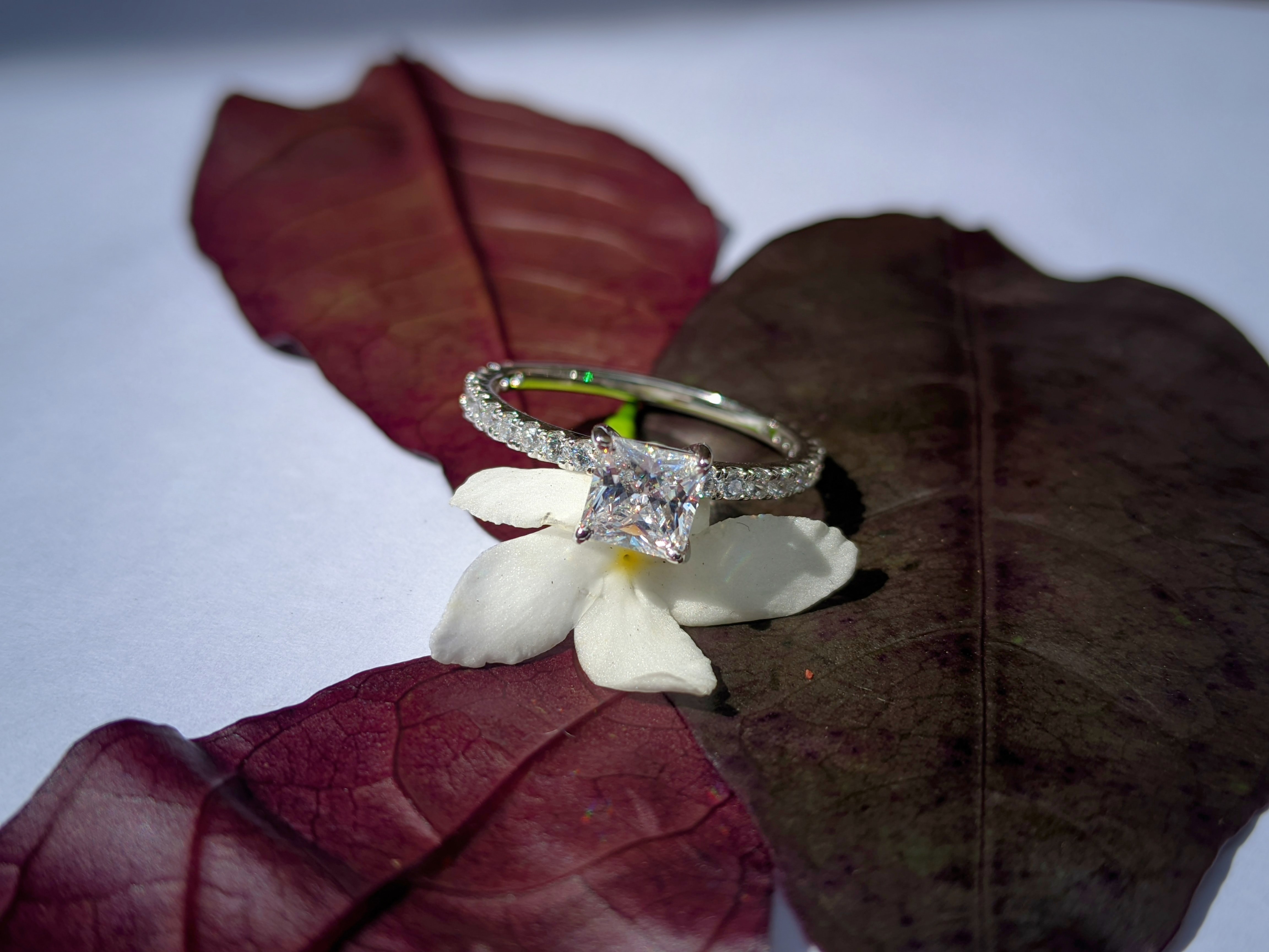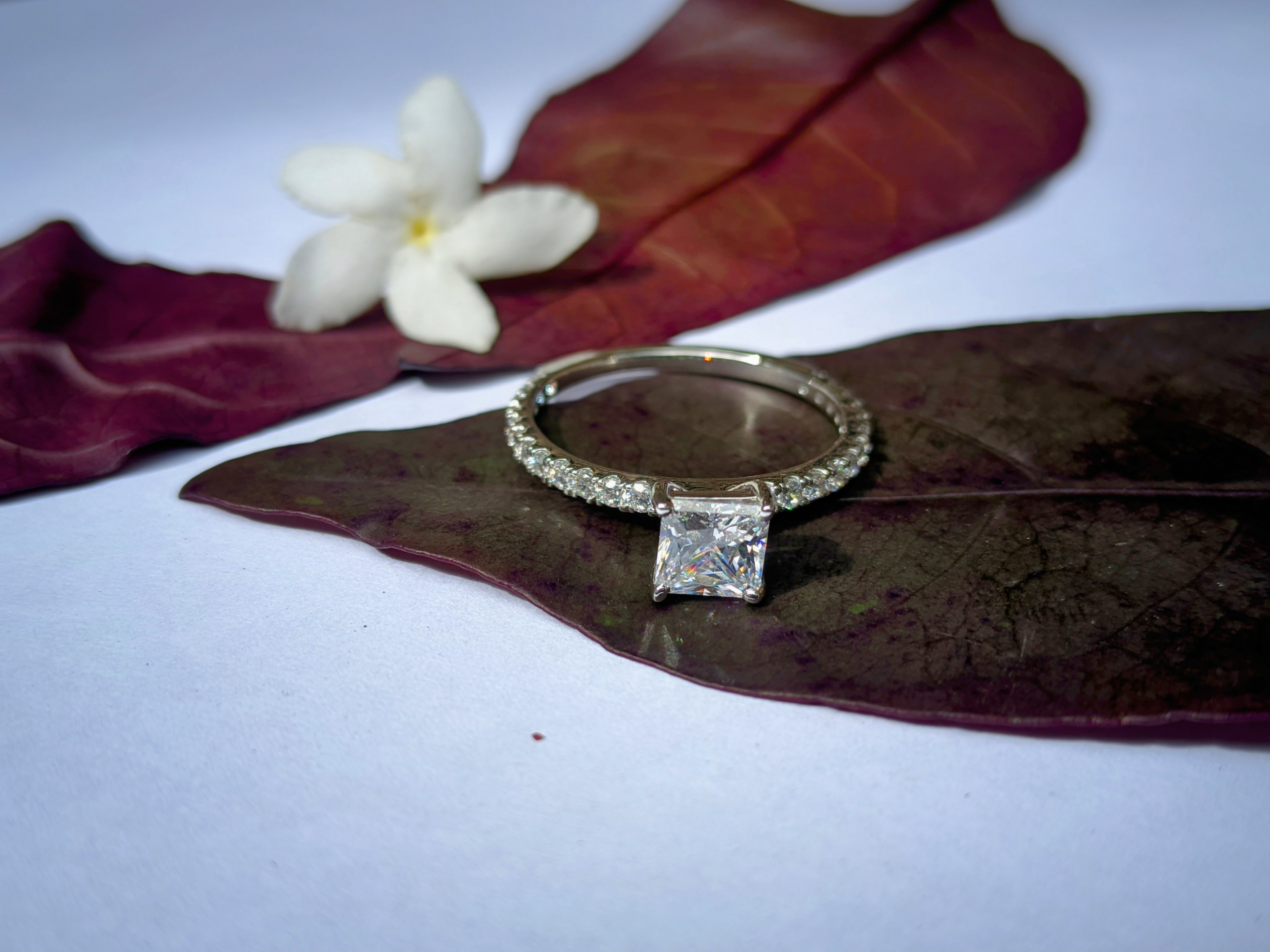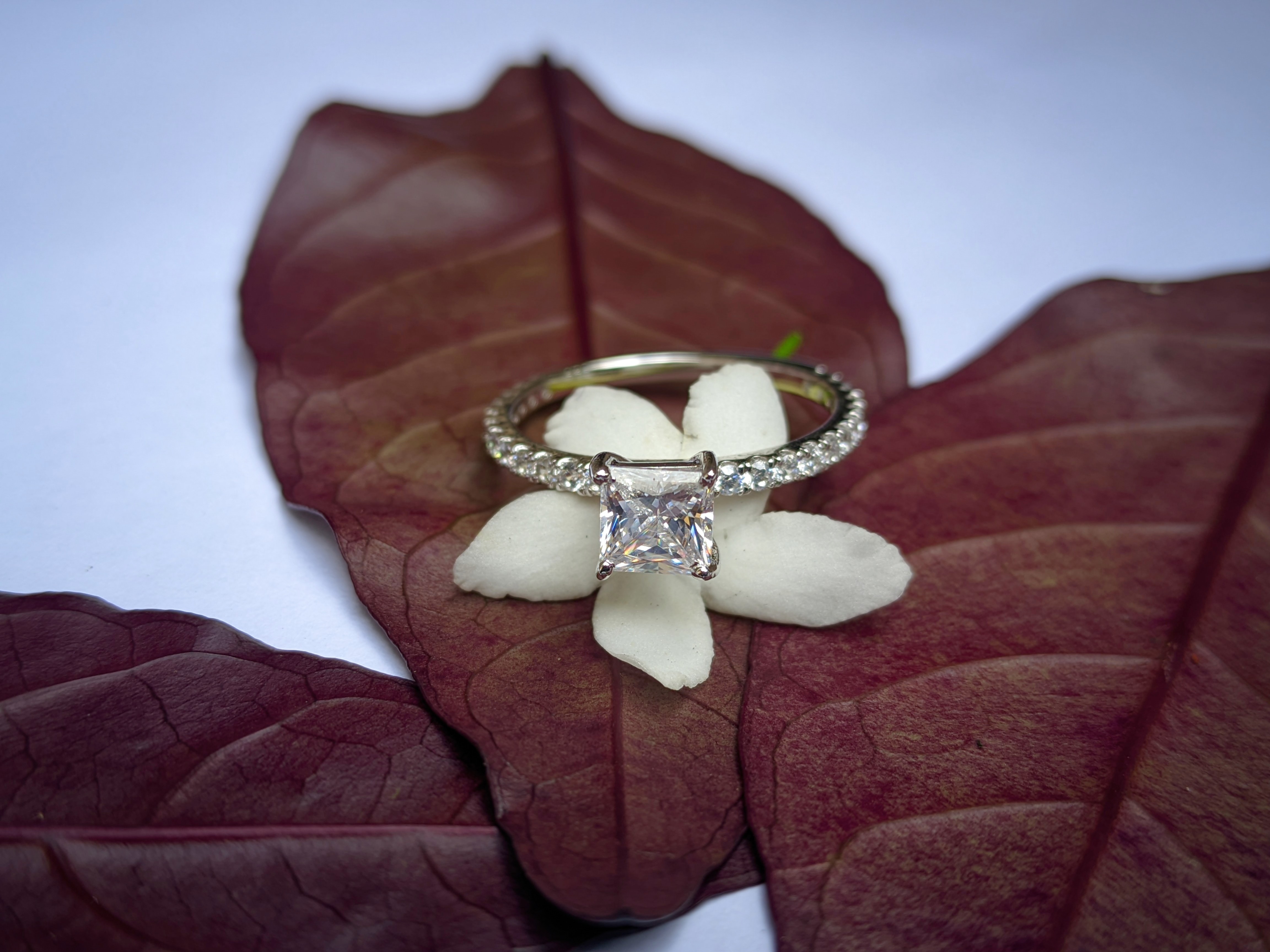 The Princess Cut Accent Diamond Ring showcases a stunning central princess cut diamond, surrounded by shimmering accent stones that create a captivating halo effect. Available in various metal options, it’s perfect for engagements or special occasions. This timeless piece symbolizes love and commitment, making it a cherished addition to any jewelry collection. SKU: DLR-081