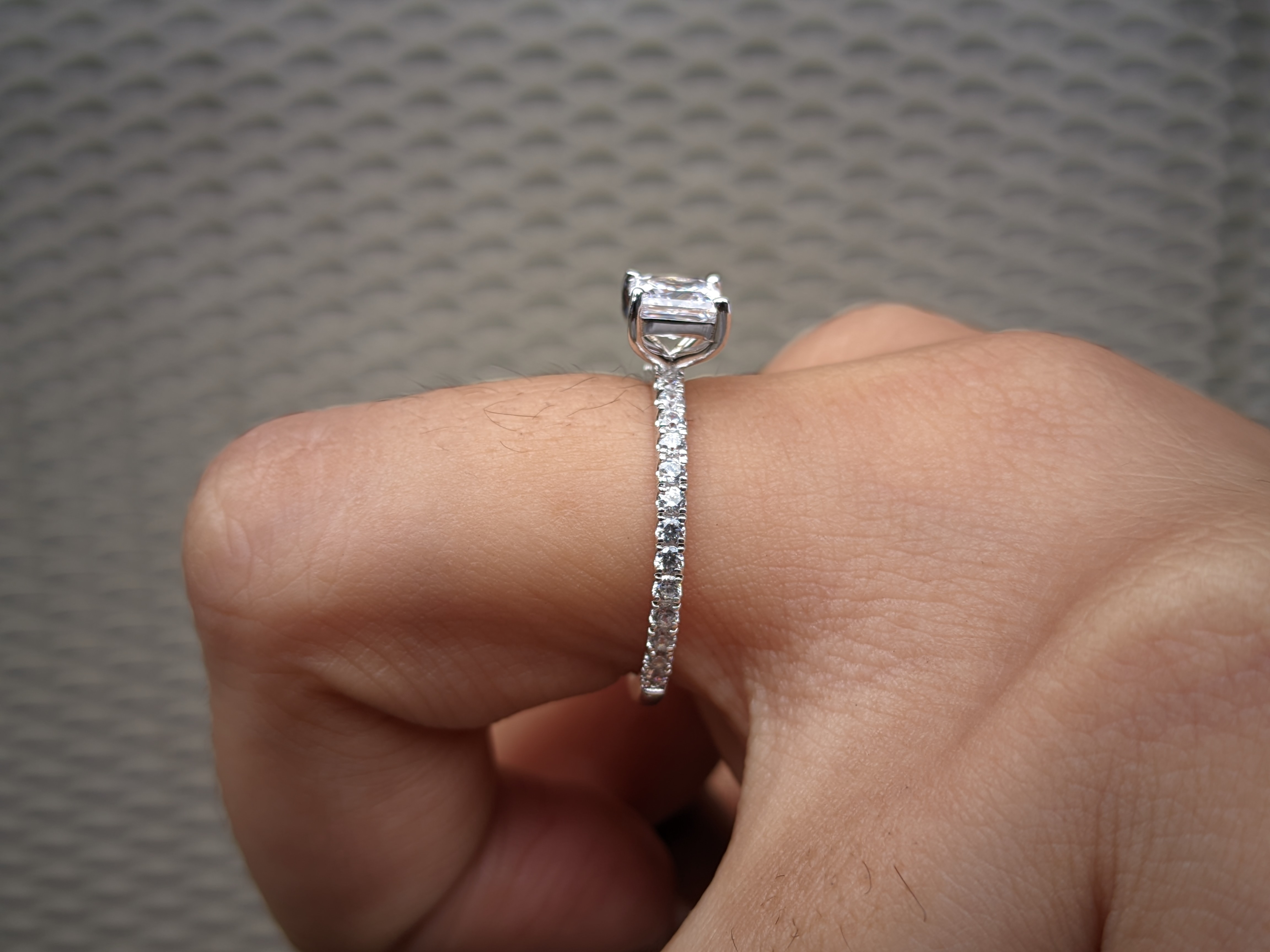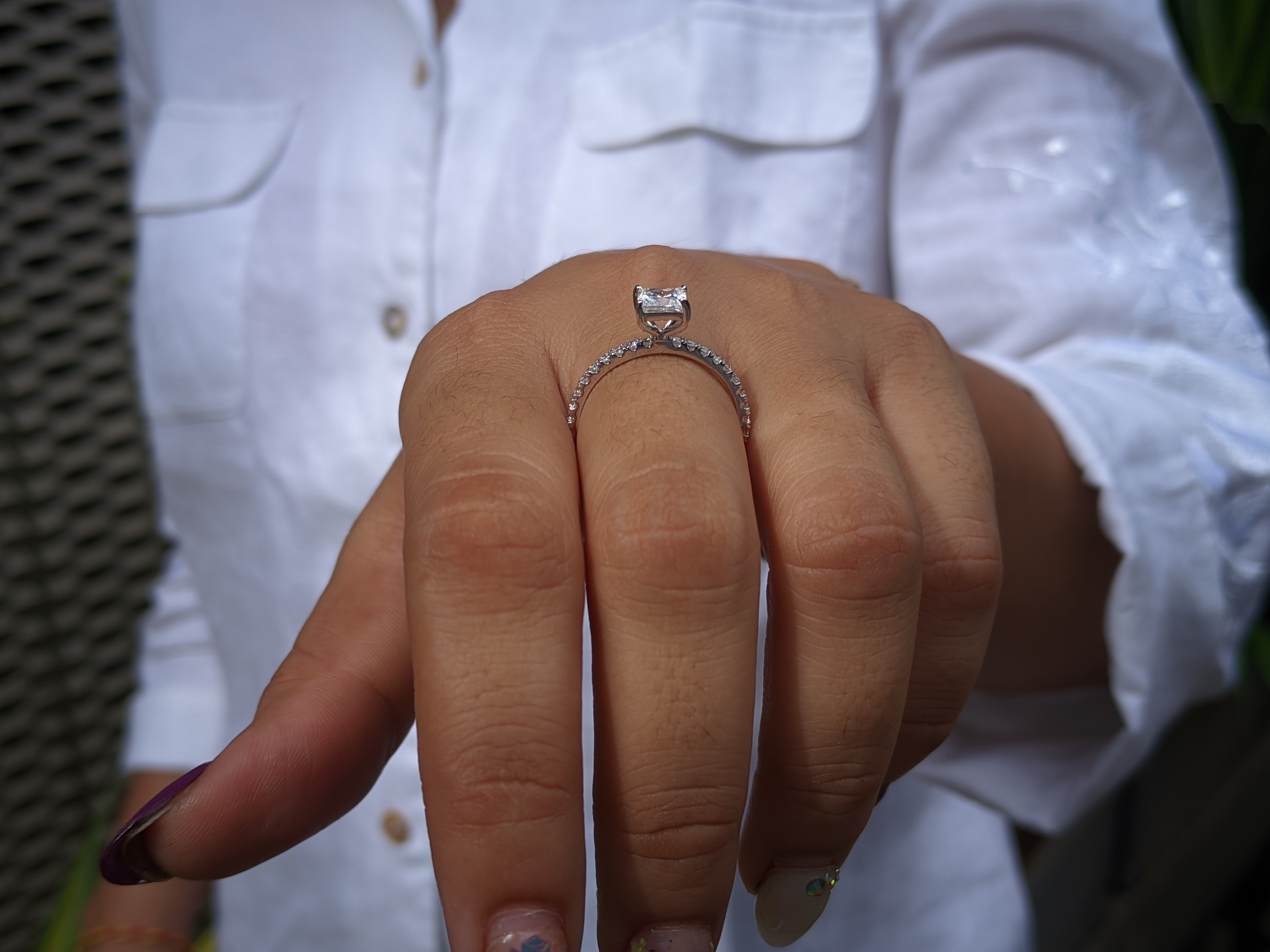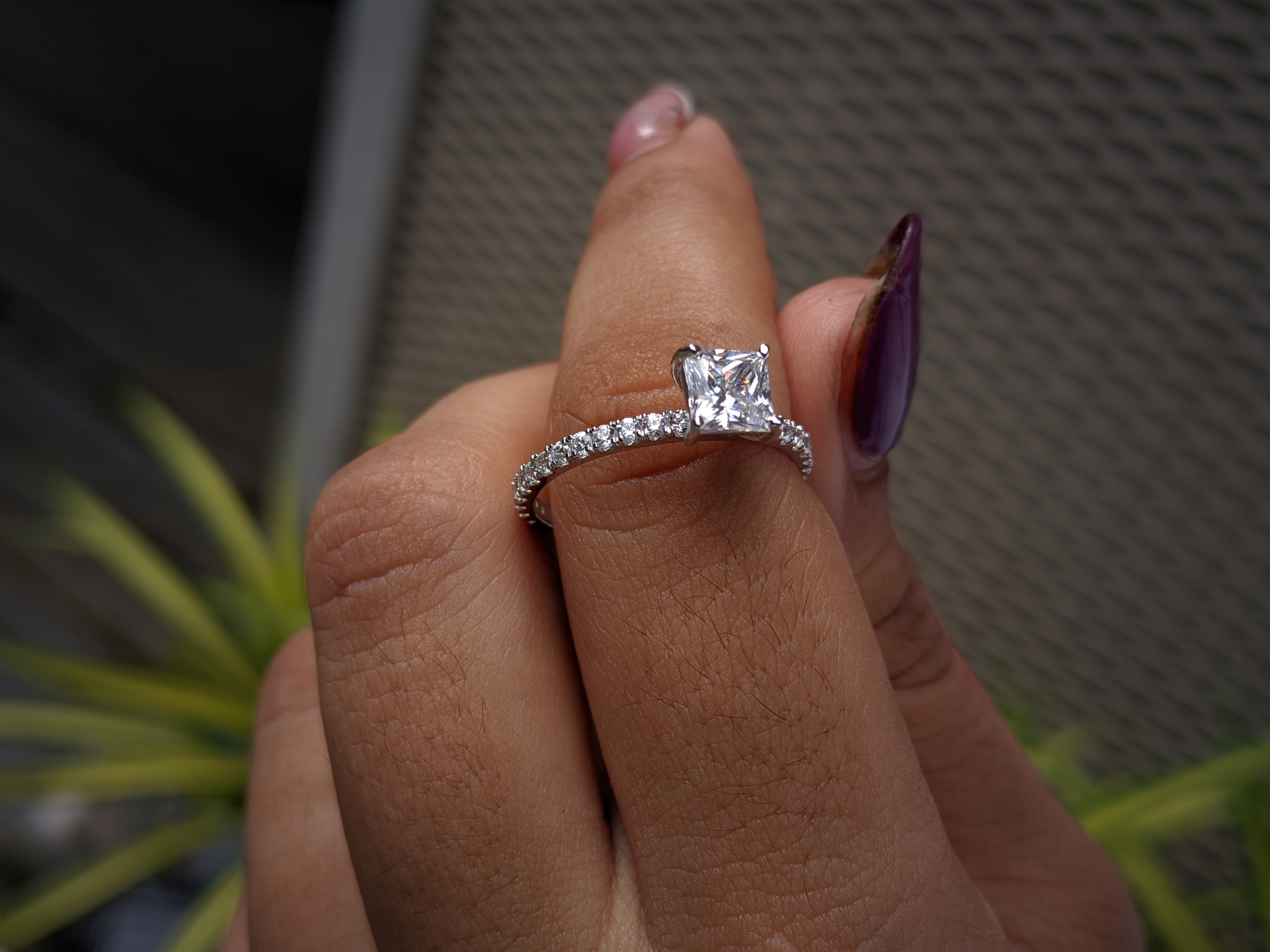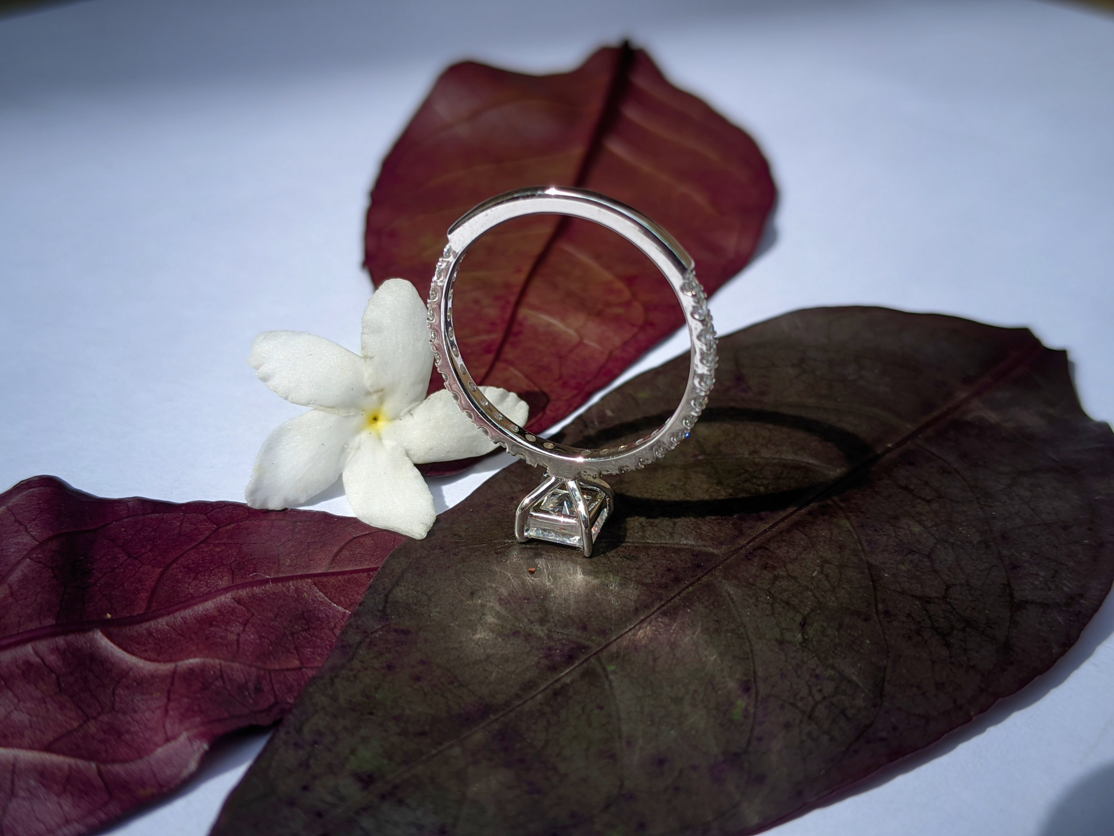 The Princess Cut Accent Diamond Ring showcases a stunning central princess cut diamond, surrounded by shimmering accent stones that create a captivating halo effect. Available in various metal options, it’s perfect for engagements or special occasions. This timeless piece symbolizes love and commitment, making it a cherished addition to any jewelry collection. SKU: DLR-081