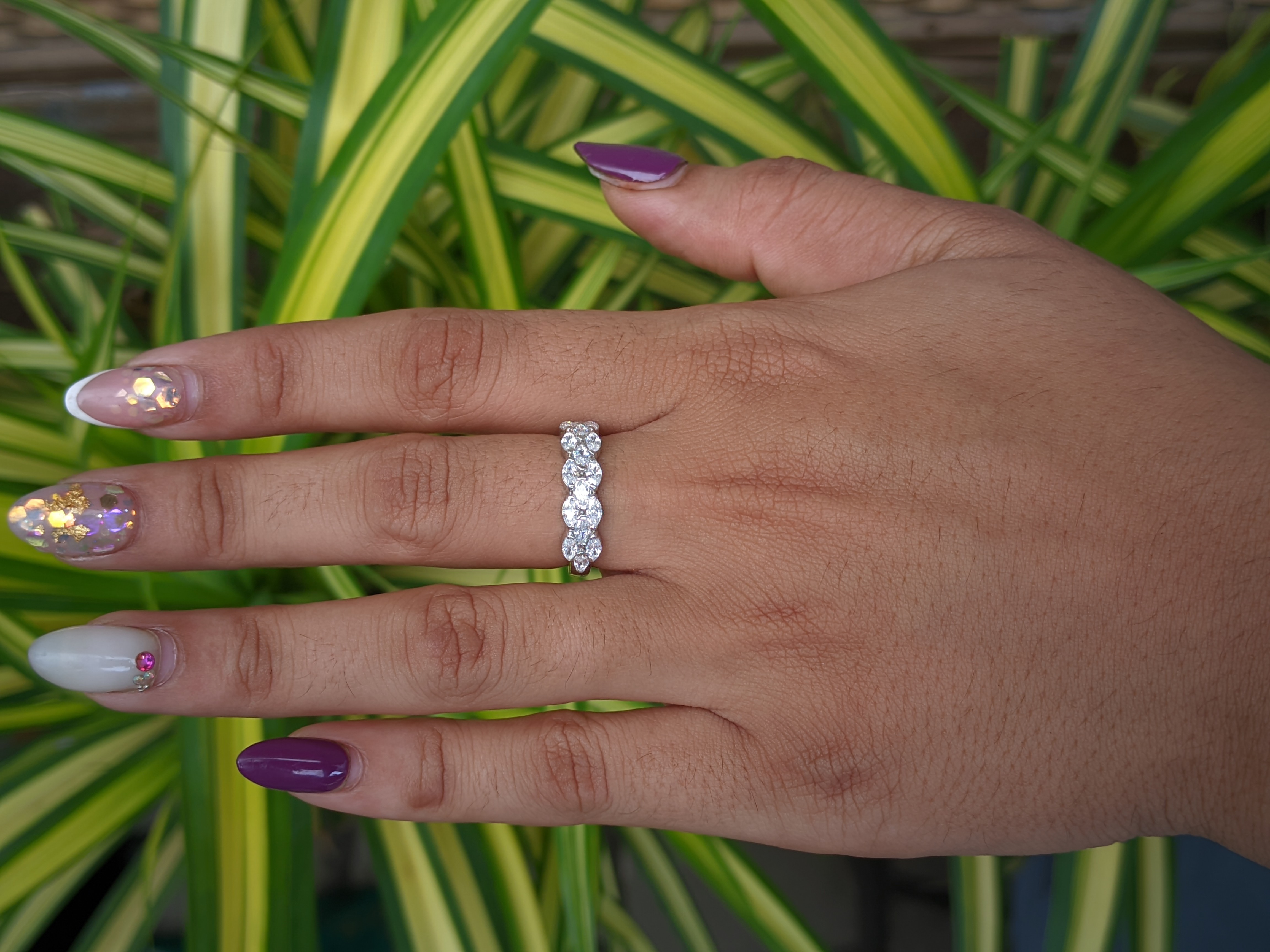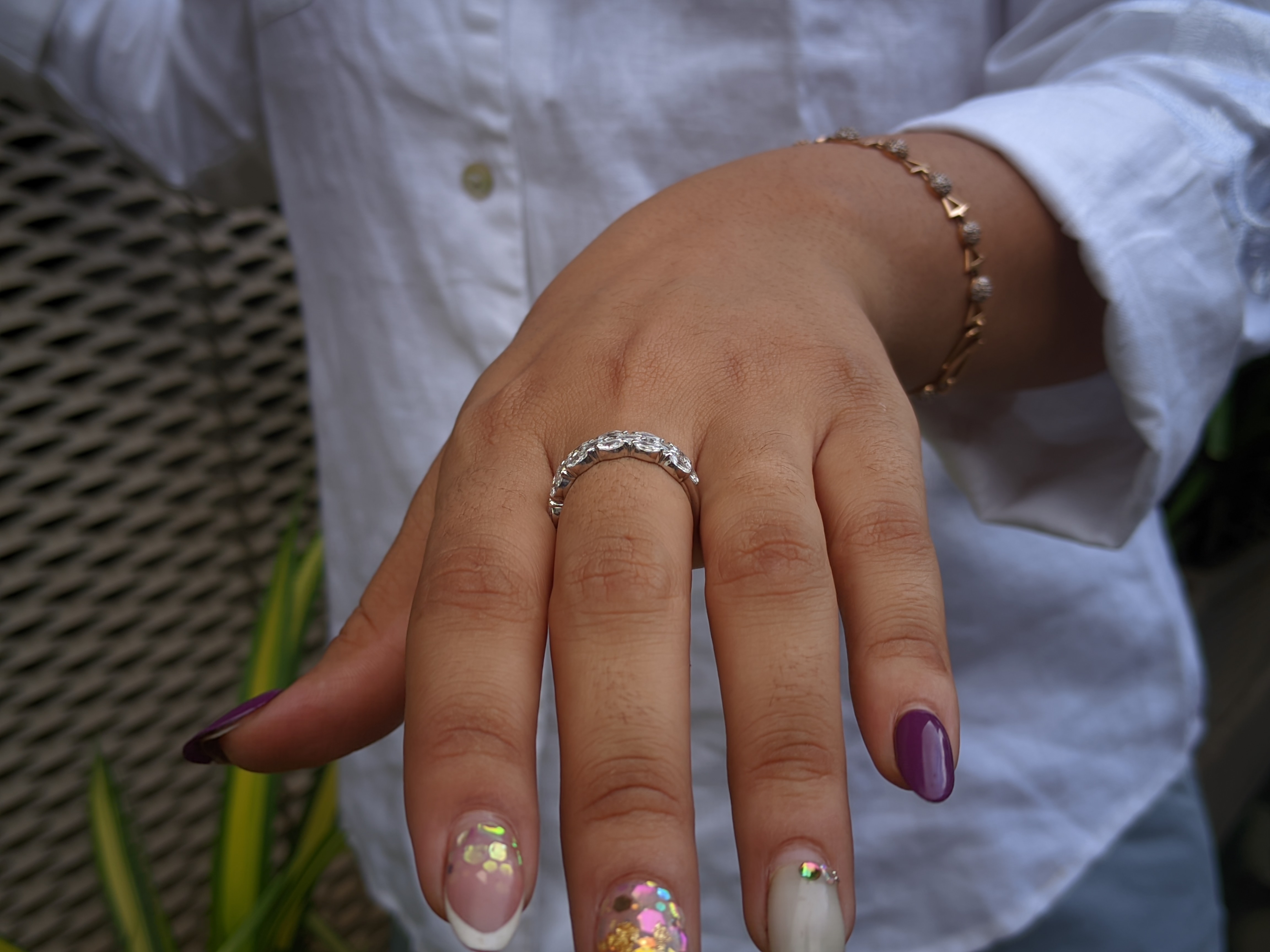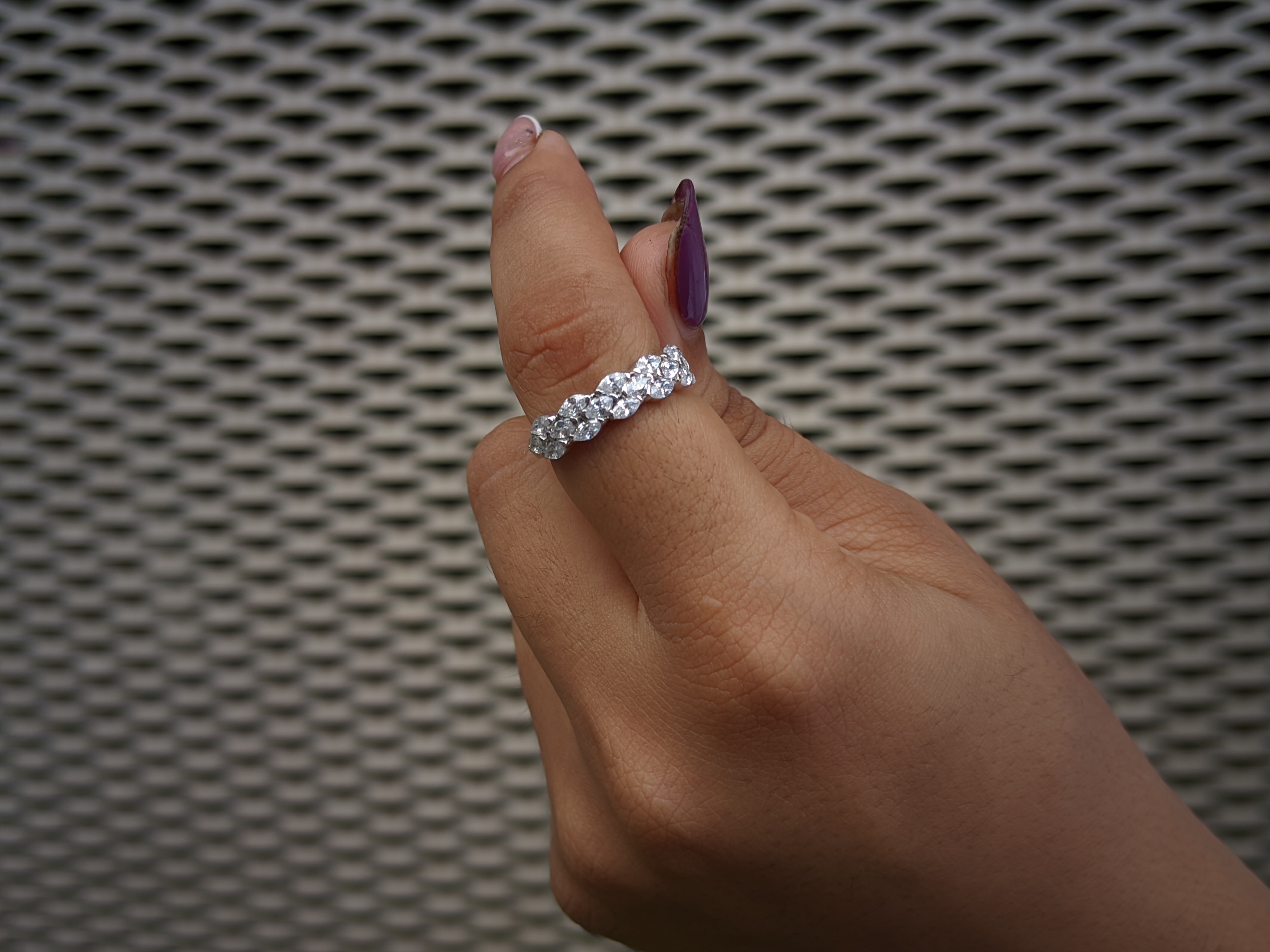 The Marquise Cut Lab Grown Diamond Three Row Half Eternity Band is a captivating blend of elegance and modernity. This exquisite ring features shimmering marquise-cut diamonds set in three stunning rows, creating a dazzling effect that catches the light from every angle. Perfect for commemorating special moments or enhancing your everyday look, this band showcases ethical craftsmanship and timeless design, making it a cherished addition to any jewelry collection. SKU: DLR-062