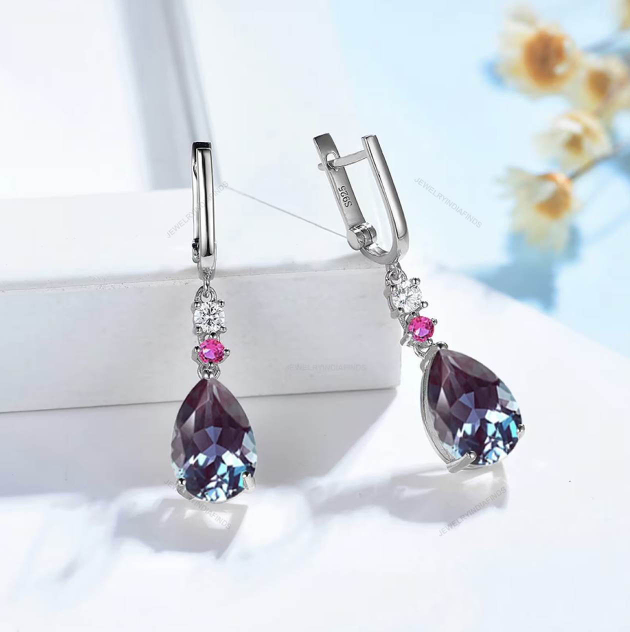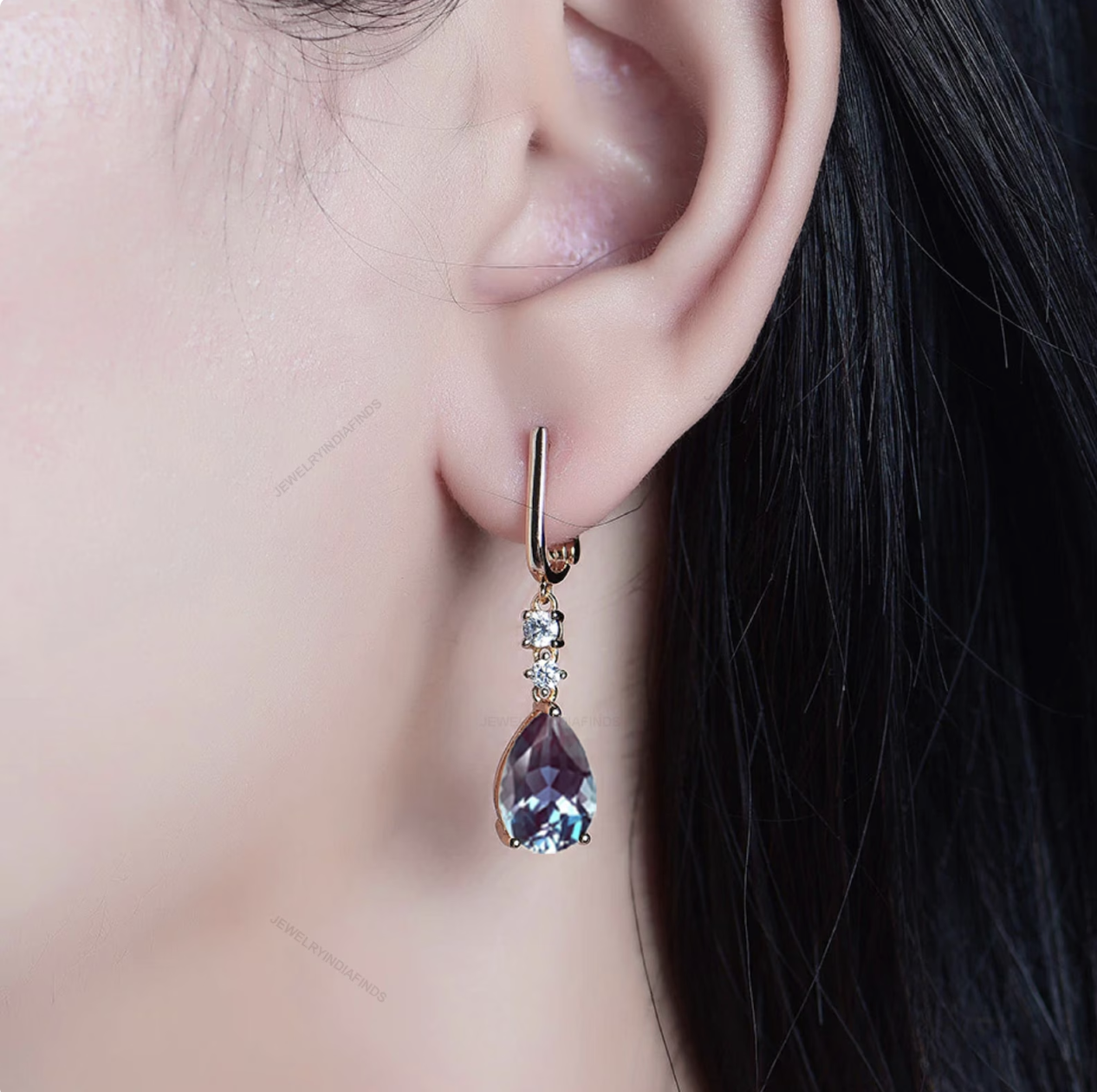 Beautiful Lab Created Alexandrite Stone Earring This Earring is made of 9K Gold and Alexandrite Gemstone